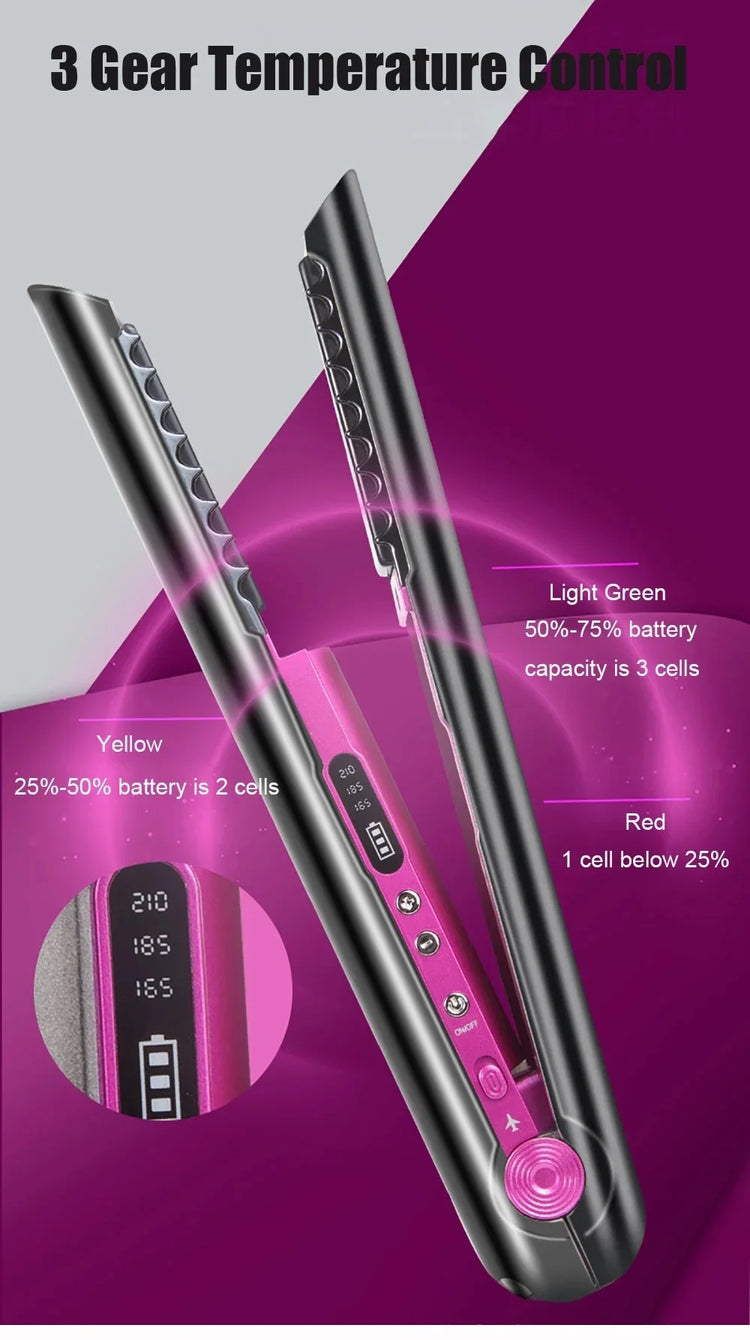 Beschreibung: Dieser handliche und kabellose Haarglätter ist der perfekte Begleiter für unterwegs. Dank seiner kompakten Größe und der praktischen Ladestation passt er in jede Tasche. Das Gerät verfügt über eine schwimmende Platte und integrierte Kammzähne, um das Haar sanft und effizient zu glätten oder zu stylen.