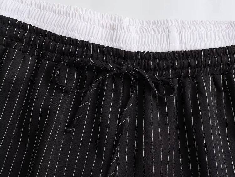 Weites, gerades Bein, gestreiftes Patchwork-Design, elastischer Bund mit Kordelzug
