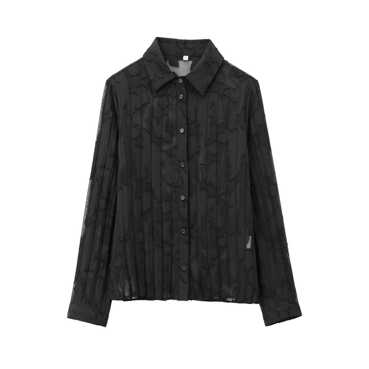 Zweiteiliges Set mit durchscheinendem Faltenhemd und Rock