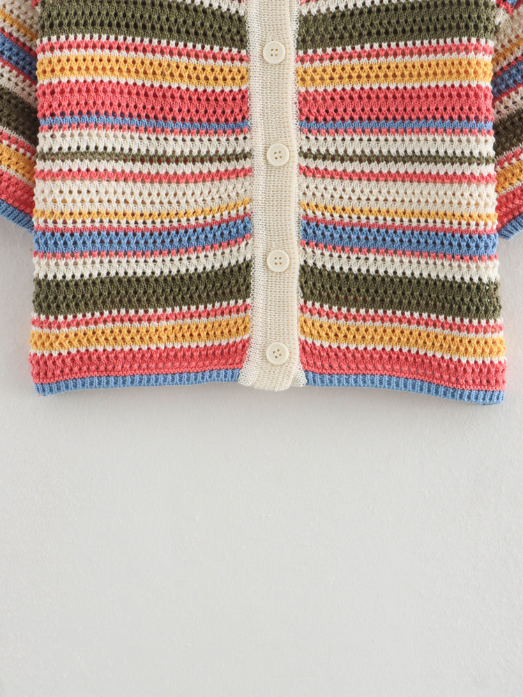 Kurzärmeliges Set mit gestreifter Strickjacke und Shorts